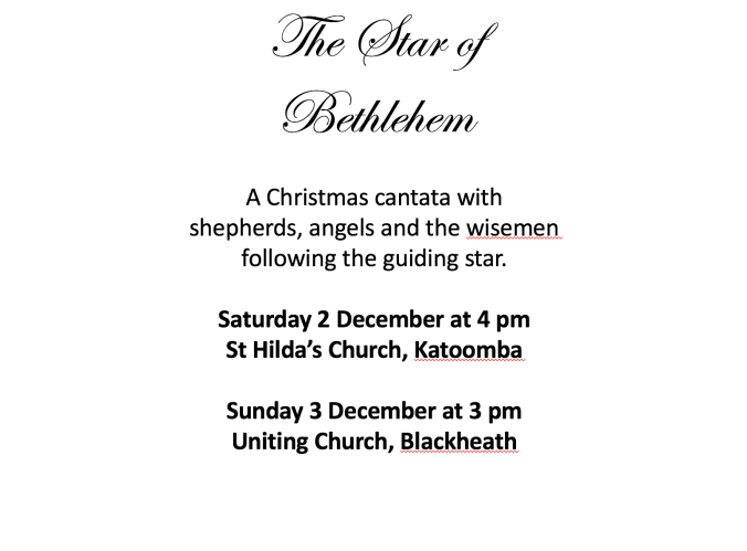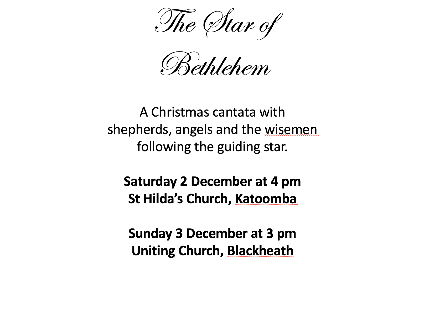We rehearse on Tuesday evenings during the NSW school term from 7pm to 9:30pm at the Baptist Church Hall, Bundarra Street in Blackheath.