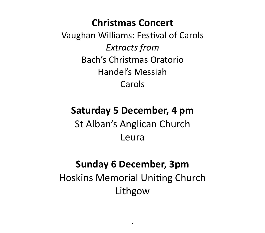 We rehearse on Tuesday evenings during the NSW school term from 7pm to 9:30pm at the Baptist Church Hall, Bundarra Street in Blackheath.