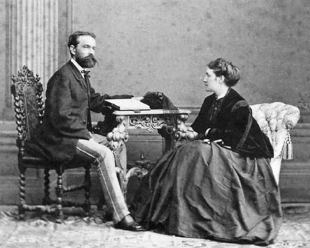 In 1867, Rheinberger married a former piano pupil, an aristocratic poet and socialite Franziska “Fanny” von Hoffnaass (seven years his senior). The two shared a love for Romantic poetry and literature, particularly English and German. Fanny spoke several languages, painted and drew, was an accomplished pianist, and an early travel-writer. Her poems provided the texts for much of her husband’s choral works.