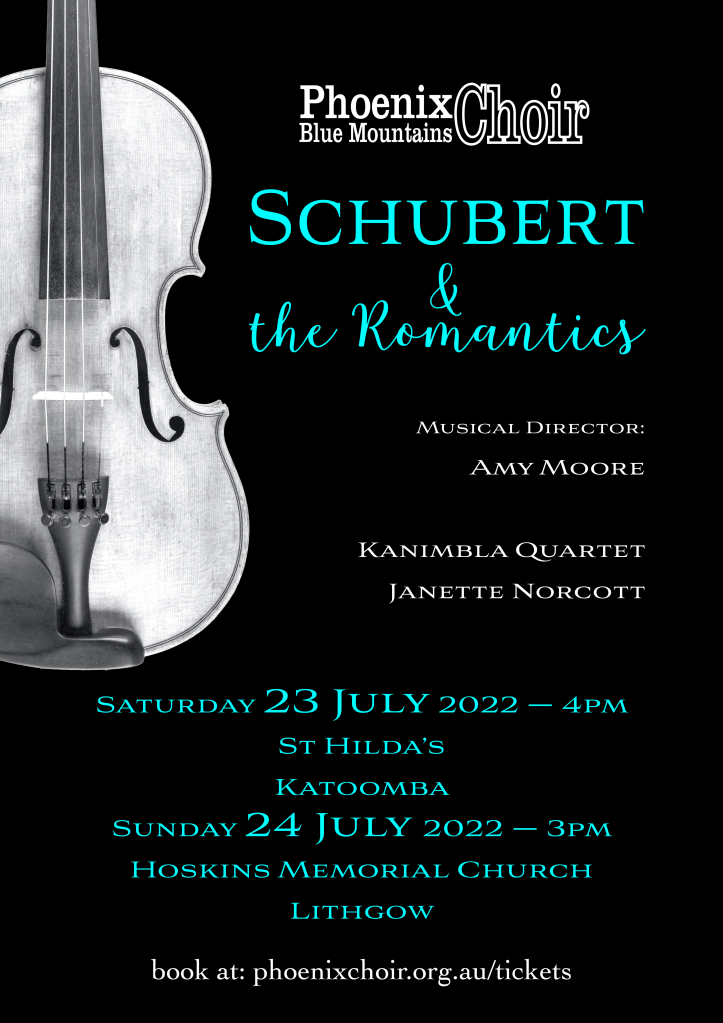 For the Schubert Mass the choir was joined by soloists Ria Andriani (Soprano), Louis Hurley (Tenor) and Brendan McRae (Baritone). We are particularly grateful to Ria who stepped in at the last moment to fill a Covid absence, and to our choir tenor, Ruth, who drove to Sydney and back to collect Ria after her Sunday morning performance at Christchurch St Laurence.